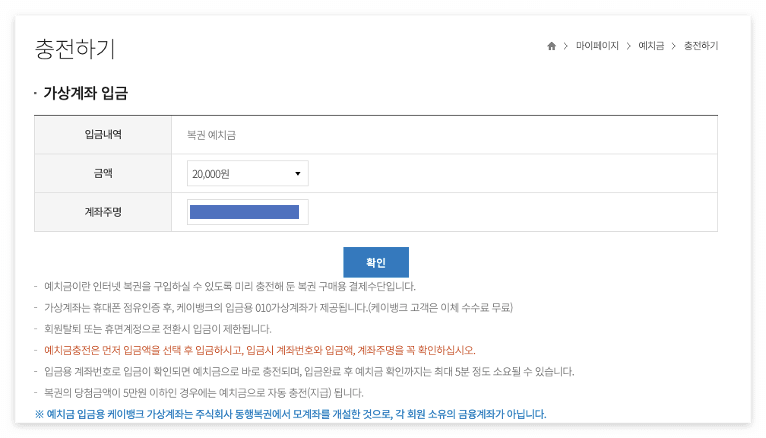계좌주명에는 동행복권_사용자 이름 형식으로 나오게된다.